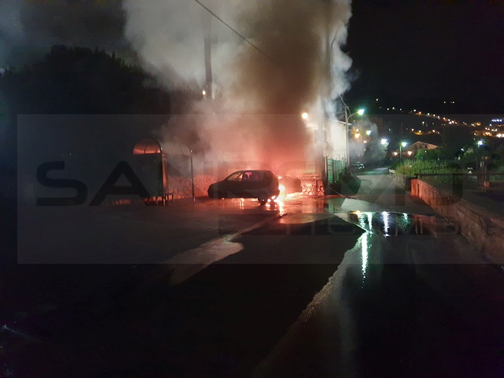 Bordighera: incendio per un corto circuito su un'auto stanotte di fronte alla 'Maria Primina' (Foto)