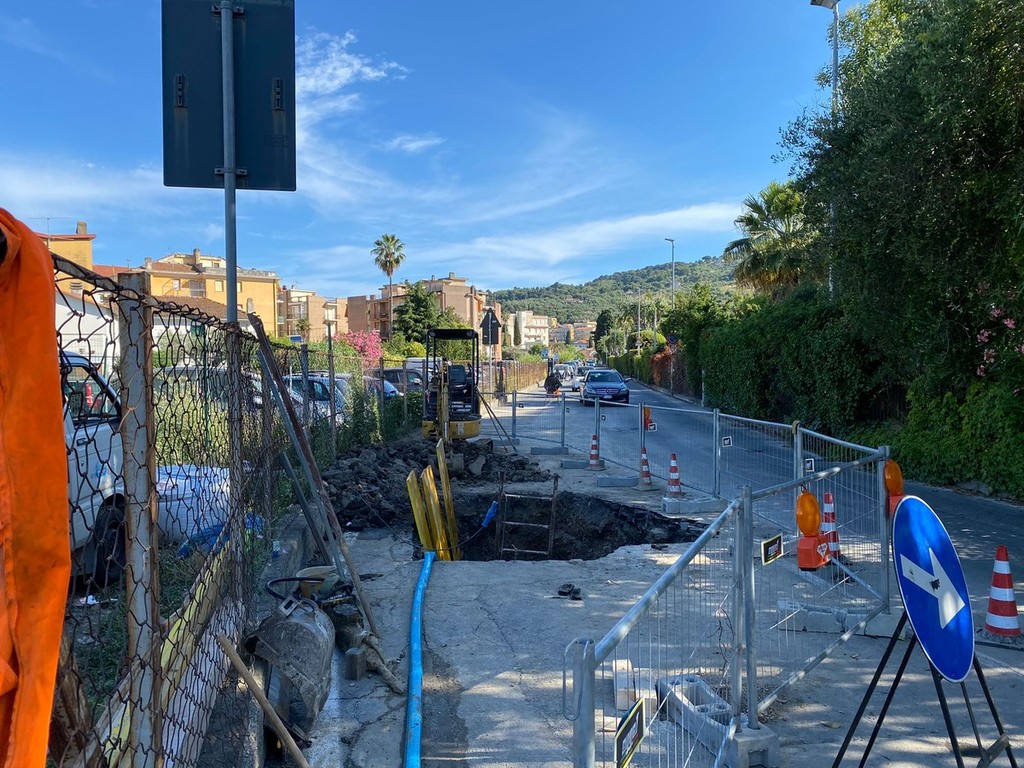 Ennesima rottura della tubazione dell'acquedotto Roja a Diano Marina. Il guasto si è registrato in via Silvio Novaro in prossimità dell'incrocio con via Villebone.