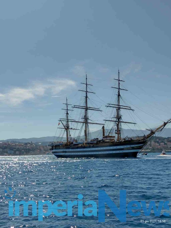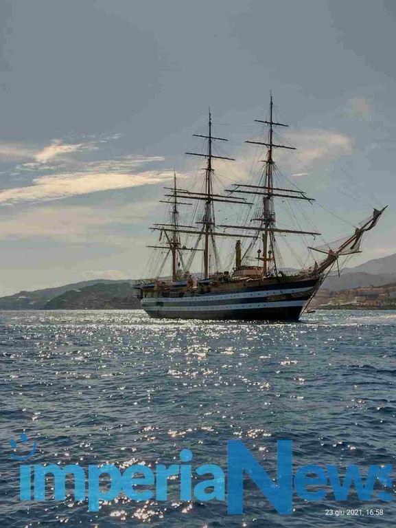 A godere da vicino della vista della nave scuola Amerigo Vespucci, di passaggio oggi davanti allo specchio acqueo di Imperia, sono stati alcuni pescherecci che hanno salutato con le sirene delle barche la prestigiosa imbarcazione della marina militare italiana.