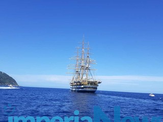 A godere da vicino della vista della nave scuola Amerigo Vespucci, di passaggio oggi davanti allo specchio acqueo di Imperia, sono stati alcuni pescherecci che hanno salutato con le sirene delle barche la prestigiosa imbarcazione della marina militare italiana.