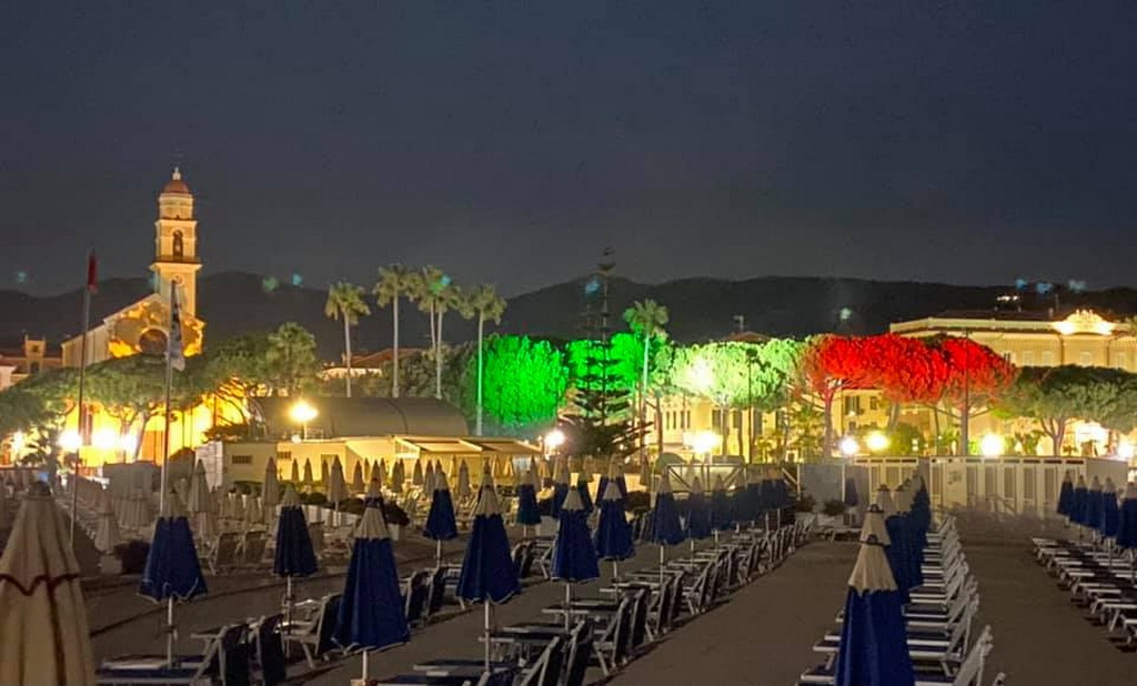 In risposta, l'Amministrazione Comunale di Diano Marina ha salutato il passaggio dell'Amerigo Vespucci predisponendo l'illuminazione con il tricolore della pineta antistante il Molo delle Tartarughe e facendo suonare, amplificato, il Canto degli Italiani di Goffredo Mameli.