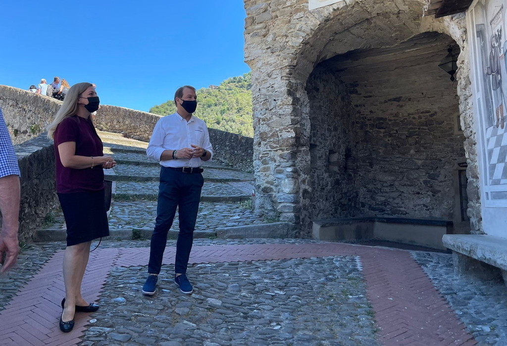 Il Console generale russo, Maria Vedrinskaia, accompagnata dalla funzionaria del consolato di Genova Caterina Scirikova, ha visitato questo pomeriggio Dolceacqua.