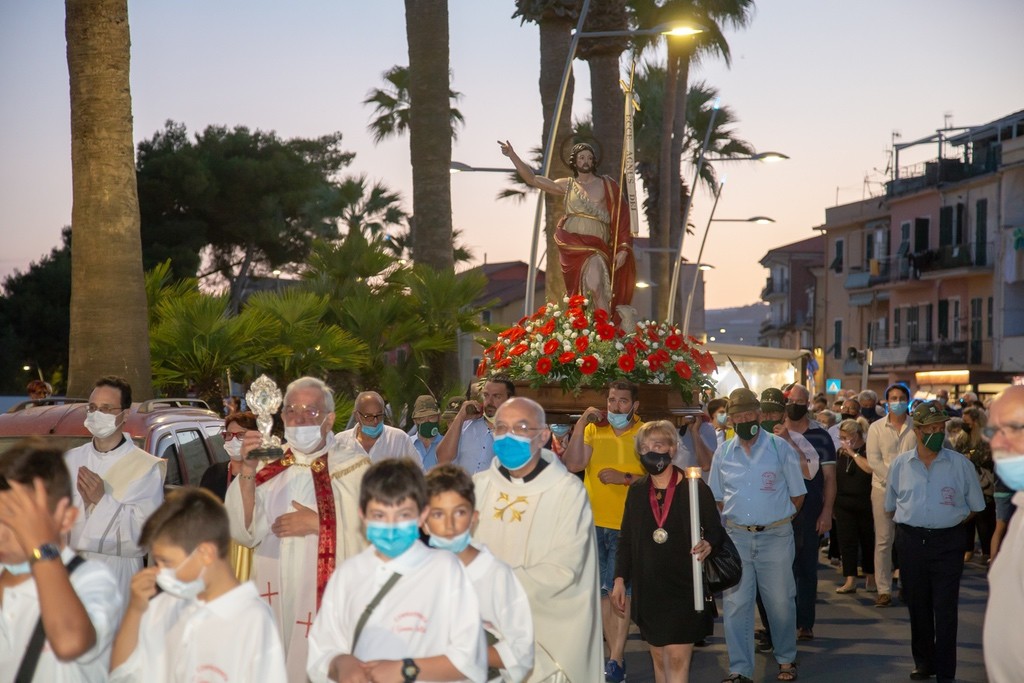 Come da tradizione i festeggiamenti per San Giovanni Battista hanno preso il via con la Santa Messa celebrata presso l'oratorio, seguita dalla processione lungo via Nino Bixio e sul lungomare con la statua del Santo. Il tutto accompagnato dalla banda Pasquale Anfossi di Taggia. La processione è terminata in piazza San Giovanni con la benedizione della reliquia.