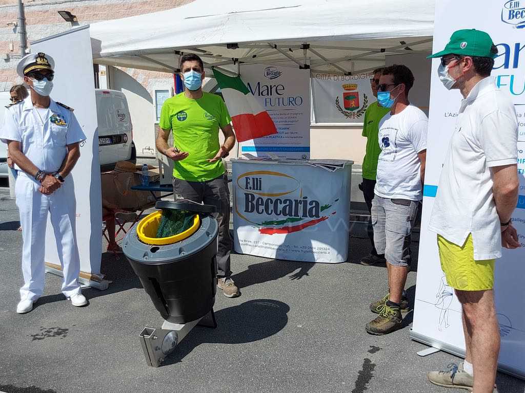 La Fratelli Beccaria di Camporosso ha donato un seabin al comune di Bordighera. L'apparecchio viene immerso in acqua e trattiene plastiche e rifiuti contribuendo alla pulizia del mare.