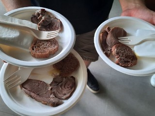 Ricco e ottimo il menù di degustazione dei prodotti Slow Food della Condotta: il prosciutto del presidio dell’agnello sambucano, tartine con la crema all’aglio di Caraglio e la soma d’aj con il presidio dell’aglio storico di Caraglio su una base di pane di segale della Comunità della segale della valle Gesso. La Comunità della chiocciola di Borgo e valli ha portato in degustazione il salame e il paté di lumaca con la lumaca fritta; l’esclusivo presidio del Castelmagno d’alpeggio è invece stato abbinato al presidio dei mieli di montagna. In chiusura un assaggio di dolci al cioccolato di Dulcioliva.
