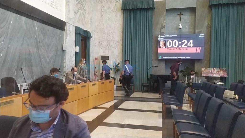 L'azione ha scatenato la viva reazione del sindaco Claudio Scajola che, visibilmente innervosito, ha intimato a gran voce ai militari di lasciare l'aula.