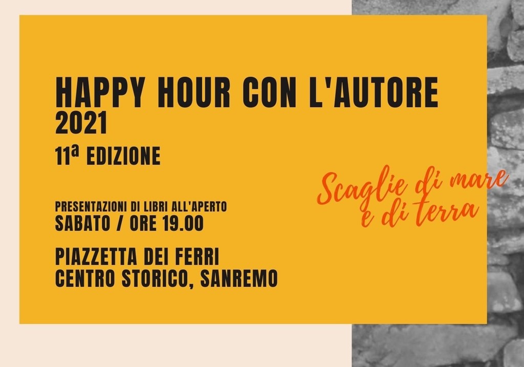 “Scaglie di mare e di terra” è il sottotitolo scelto nel 2021 come tema della rassegna. Le “scaglie” di “Happy Hour”, con un doppio riferimento anche al termine dialettale (i frammenti di quelle pietre tanto usate nelle campagne ponentine), sono l’immagine evocativa del trait d’union dell’iniziativa. I libri presentati parlano, tutti, di storie e percorsi del ponente ligure. Un omaggio al territorio che gli organizzatori hanno voluto tributare in un periodo, come quello che stiamo vivendo, in cui le persone hanno scoperto (o riscoperto) un nuovo legame con la propria terra.