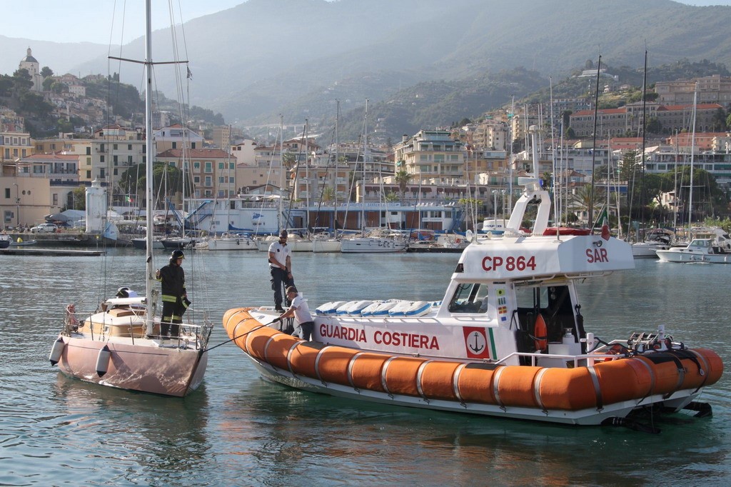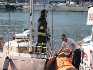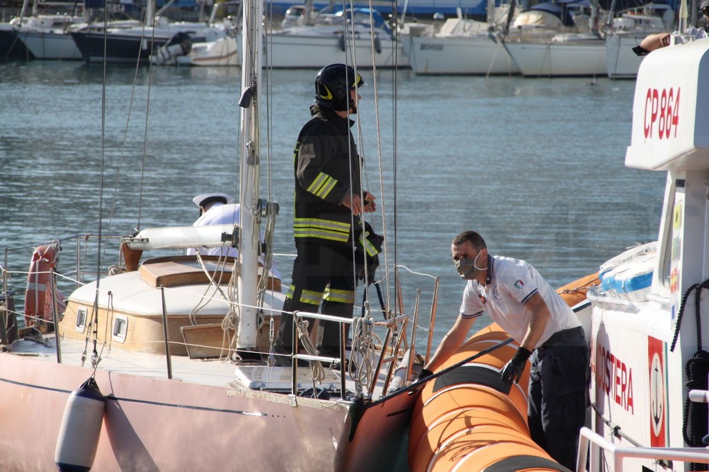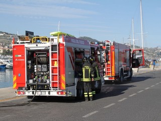 Sanremo: principio d'incendio ad una barca a vela nel porto vecchio, intervento di Vvf e Guardia Costiera (Foto)