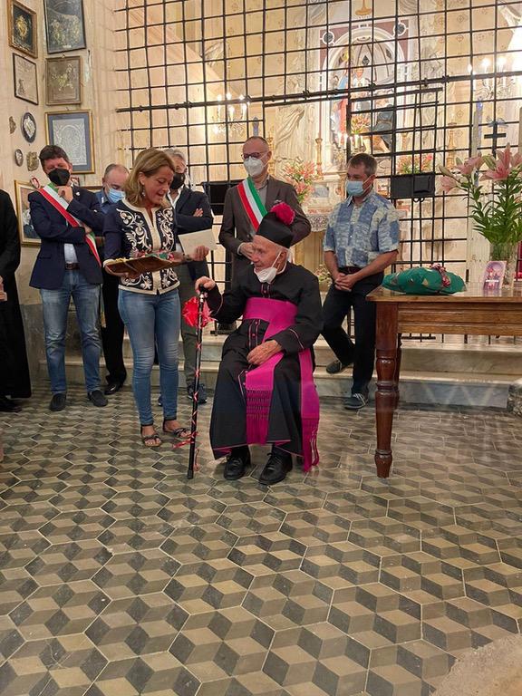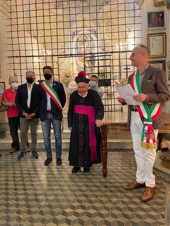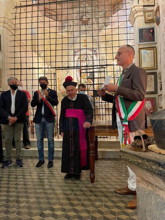 Gli ex sindaci del comune di Montalto Ligure fino all'amministrazione più recente di Montalto Carpasio hanno voluto salutare Mons. Luigi Rubino. Per il parroco 94enne, ieri è stato l'ultimo giorno di servizio sulla parrocchia montaltina, in compenso continuerà a celebrare ancora su Carpasio e Ciabaudo di Badalucco.