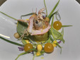 Come ad esempio il Cappon magro con i fiori, i ravioli di barbabietola con fettine di mela e scampi, o i paccheri con zafferano e lavanda. Proprio l’utilizzo dei fiori è diventato oggi uno dei tratti distintivi di questo ristorante: petali e corolle conferiscono un gusto e sapore particolare alle pre4parazioni e non sono utilizzati soltanto per l’impiattamento sempre molto curato e creativo.