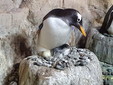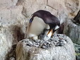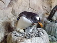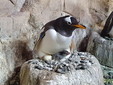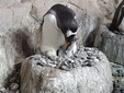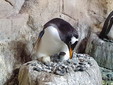 All’Acquario di Genova, i nidi vengono costruiti utilizzando i ciottoli che lo staff lascia a loro disposizione nella vasca. Vengono deposte due uova, con la possibilità di deporne un terzo se i primi due dovessero rompersi. Nella vasca in queste settimane si sono schiuse anche tre uova di pinguino di Magellano (Spheniscus magellanicus) e i pulcini si trovano al momento nei rispettivi nidi, accuditi da mamma e papà. Non saranno visibili al pubblico fino al momento in cui usciranno dal nido, probabilmente nel mese di agosto.
