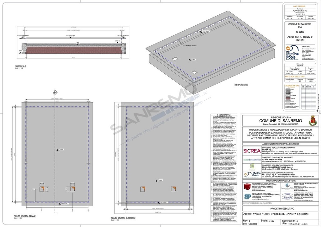 La giunta matuziana ha di recente approvato il progetto con una modifica sostanziale alla piscina. La profondità iniziale, infatti, era di 1 metro e 30 da un lato con l’aumento fino a 1.80 dall’altro. Soluzione che avrebbe impedito l’utilizzo per una serie di sport. La versione finale, però, prevede una profondità omogenea di 1.80 consentendo così lo svolgimento di gare di nuoto sincronizzato e pallanuoto.