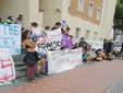 Seppur in pochi per il cosiddetto 'Transborder Camping', hanno inscenato un breve corteo, terminato di fronte al Comune