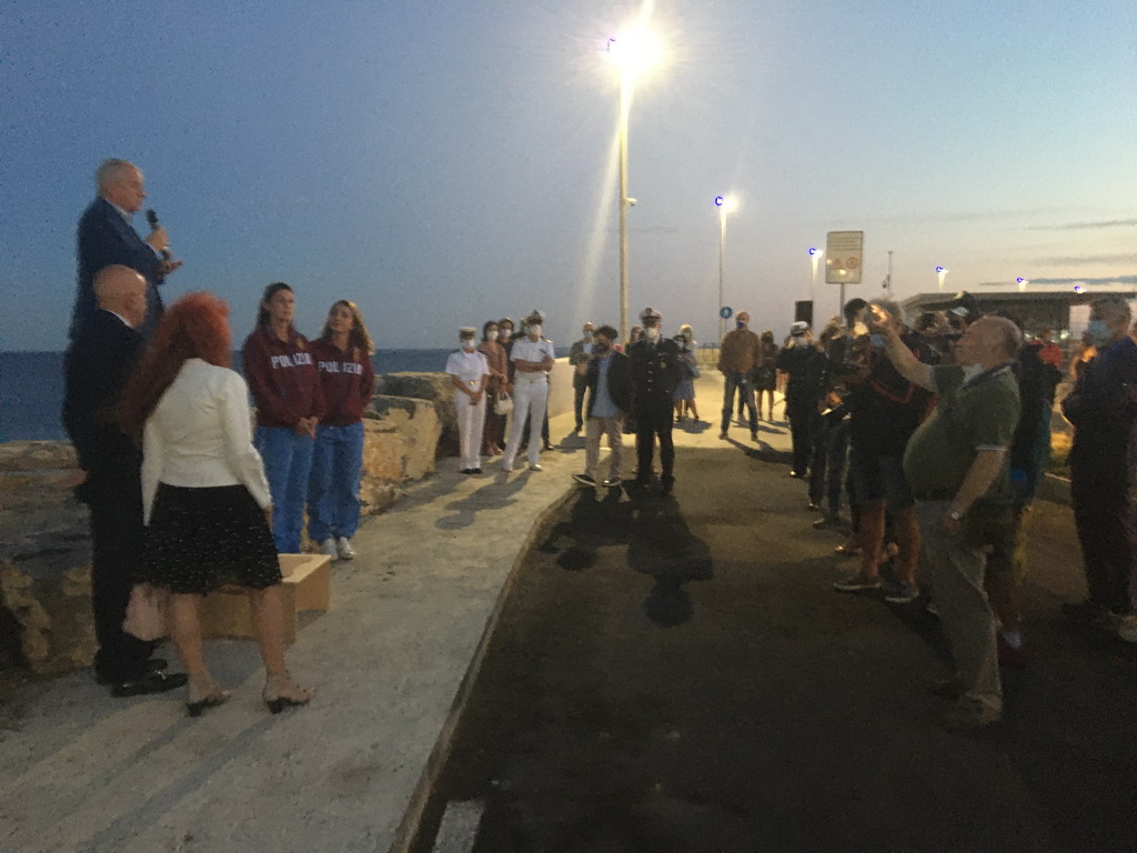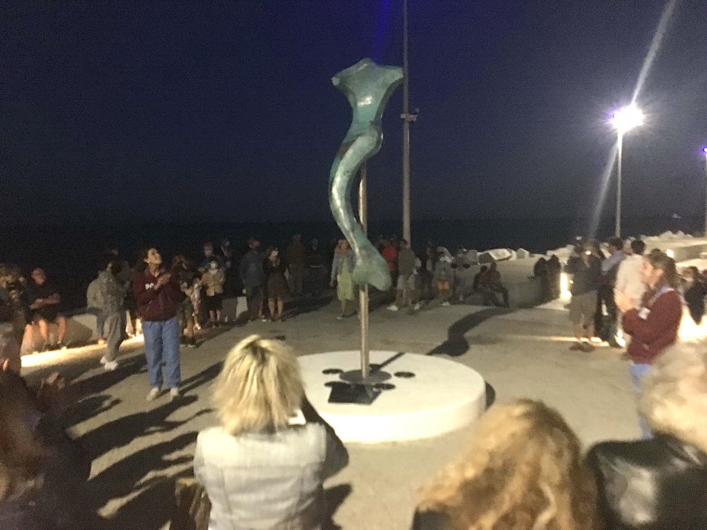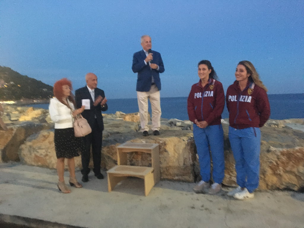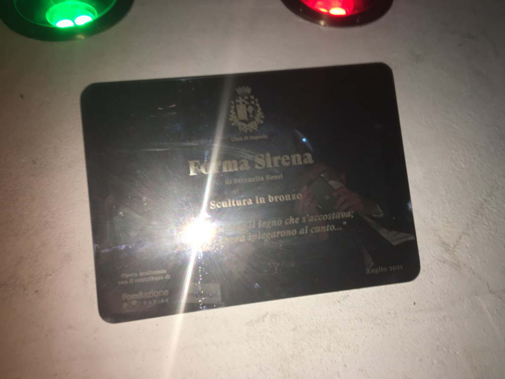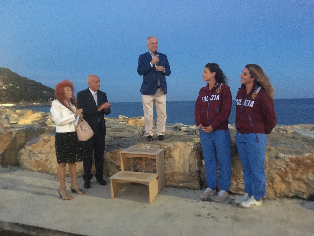 L'opera “Forma Sirena” è stata ufficialmente presentata alla città, con la rimozione dell'imballaggio che ne nascondeva i dettagli al pubblico: l'evento, che si è svolto presso la Passeggiata nel Mare sul Molo Lungo di Oneglia, ha visto la partecipazione del sindaco Claudio Scajola e di due madrine d'eccezione: le due campionesse olimpiche imperiesi Giulia Gorlero e Giulia Emmolo. Presenti alla cerimonia anche l'assessore regionale Marco Scajola e il vicepresidente della Fondazione Carige, Giacomo Raineri.