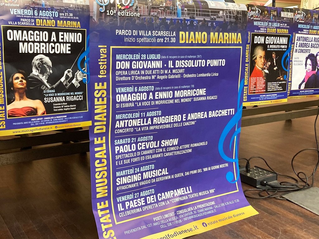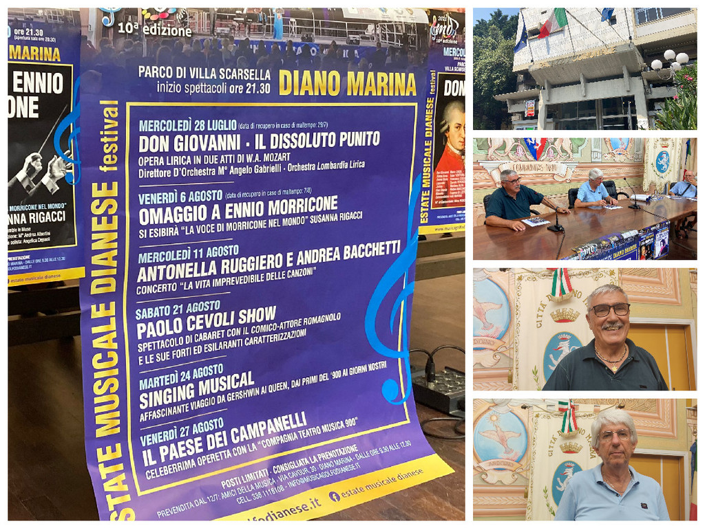 Presentato oggi presso il Comune di Diano Marina il cartellone di appuntamenti che compone la decima edizione di "Estate Musicale Dianese Festival". Gli spettacoli iniziano alle 21,30 presso il parco di Villa Scarsella, a Diano Marina, e l'ingresso è a pagamento.