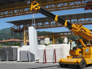 nei magazzini edili e nelle cave, ideali per il trasporto dei blocchi di marmo per le sue dimensioni ridotte estremamente manovrabili e per le elevate portate