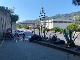 Lavori di manutenzione questa mattina in via Caduti del Lavoro e zone limitrofe a Ventimiglia. Gli operai del Comune hanno lavorato per il ripristino e le potature necessarie durante l'estate.