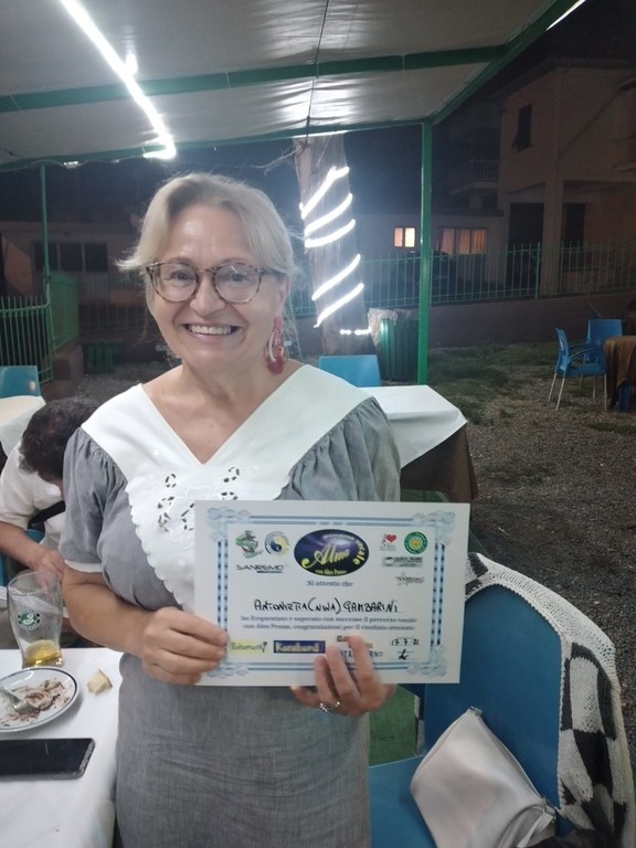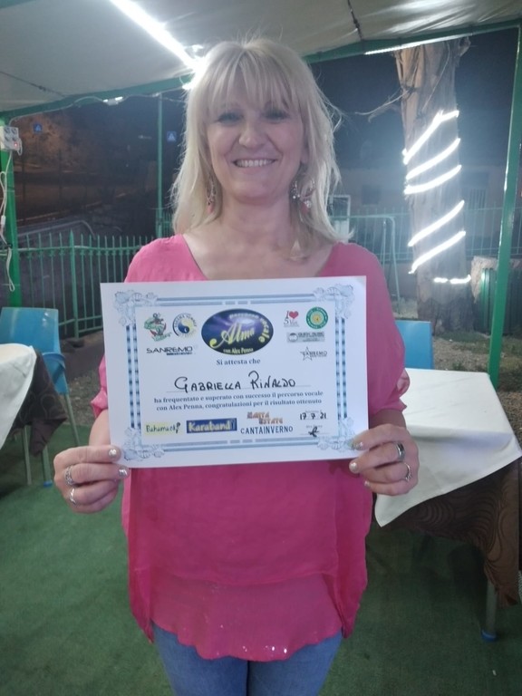 La settimana scorsa al Bahama Star si è svolta la festa per la consegna dei diplomi agli allievi che hanno partecipato ai corsi di 'Alma percorso vocale'. Si è trattato di un appuntamento speciale che ha visto tra i premiati: Aurora Giudici, Giacarlo Silvestri, Maria Nardozza, Marisa D'Aloisio, Ferruccio Barricalla, Antonietta (Nina) Gambarini, Gabriella Rinaldo, Beatrice Anfossi, Maurizio Maestro, Guido Mari, ed Enza Manna.