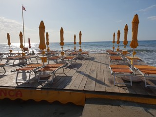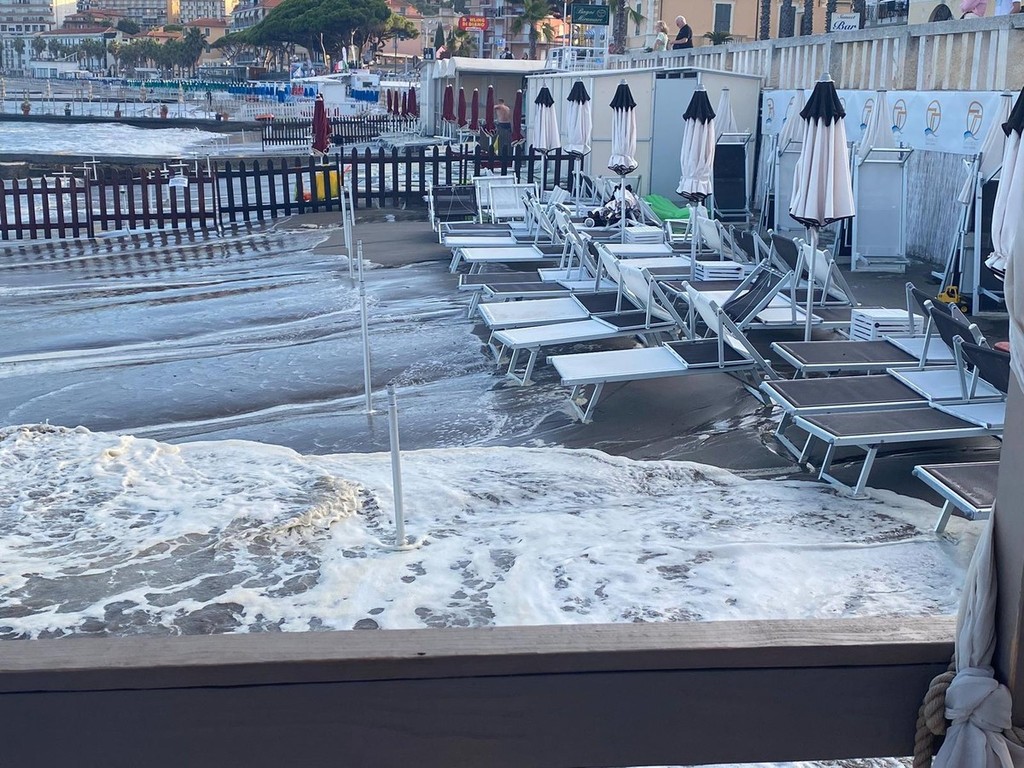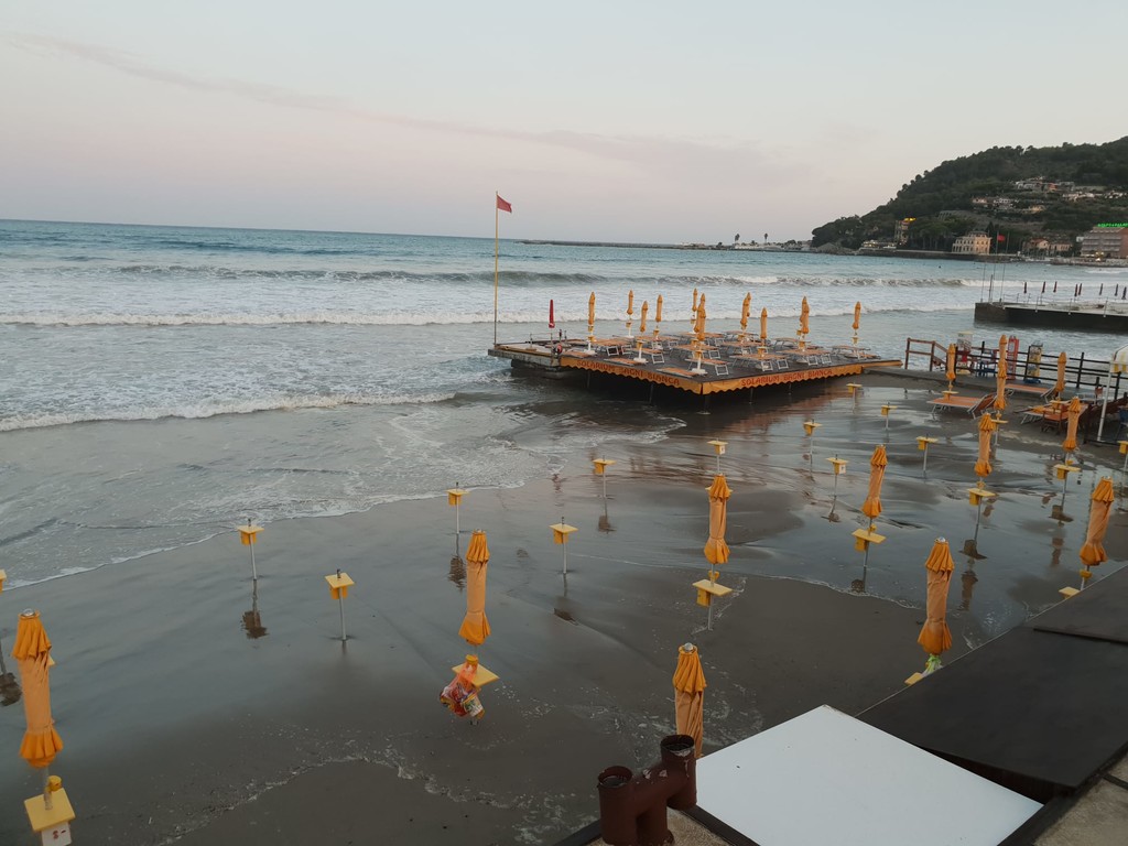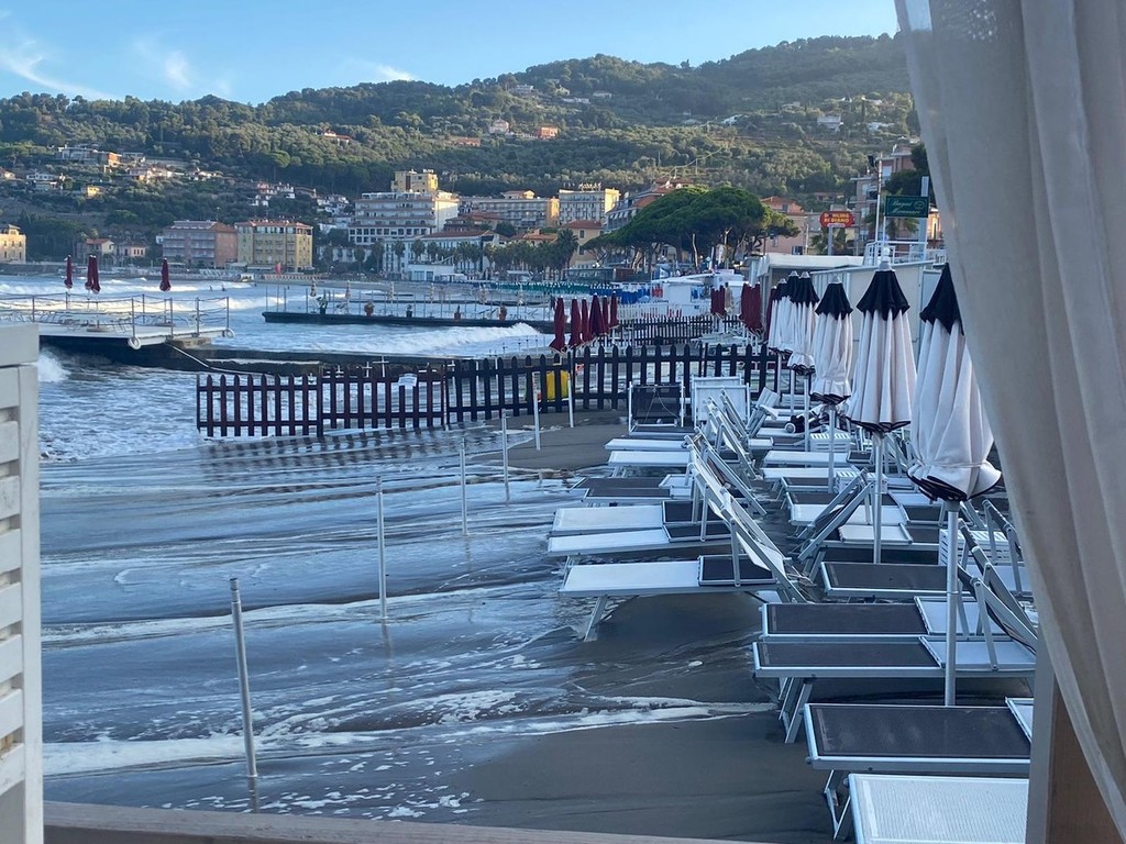 Il maltempo non risparmia Diano Marina, mareggiata colpisce gli stabilimenti a est e ovest: operatori balneari a lavoro per contenere i danni (foto)