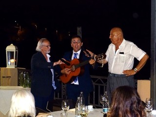 Al termine della serata una bella e inaspettata sorpresa, ha piacevolmente concluso il primo incontro conviviale organizzato dal Presidente del Lions Club Sanremo Host Giacomo Buschiazzo. Hanno raggiunto i commensali Davide Pulia, Socio del Lions Club Valdaso, nelle Marche, ottimo tenore, che ha magistralmente cantato alcuni pezzi, e il bravo Tony Reale, che ha fatto parte del cast di 'Indietro Tutta', programma di Renzo Arbore degli anni ’80. Reale ha coinvolto i presenti cantando la sigla di quello storico programma 'Vengo dopo il Tg'.