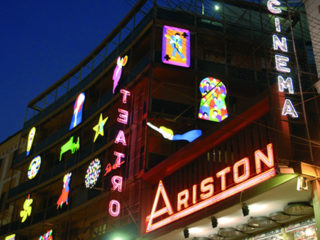 L’amicizia con Marco Lodola dava vita ad una collaborazione tra il maestro con una prima interpretazione della facciata del teatro con le sue “opere luminose” nel 2008.