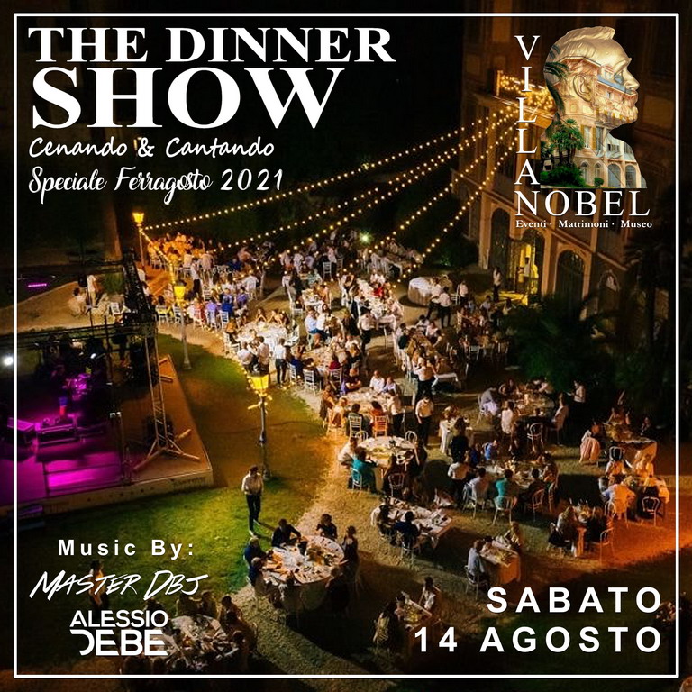 Dopo il grande successo di ferragosto 2020 ritornano nel parco di Villa Nobel il divertimento, la musica ed i sapori gourmet, in una cena cantata con l’animazione in consolle di Master DBJ e Alessio Debe. Costo della cena 40 euro a persona.