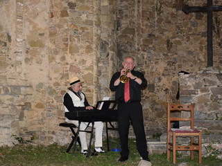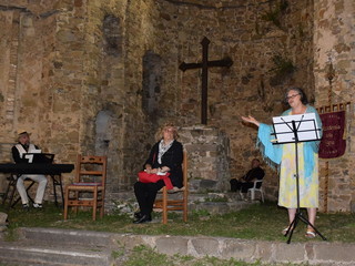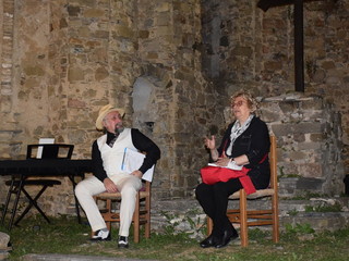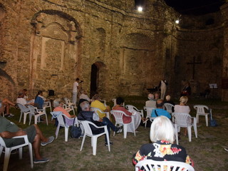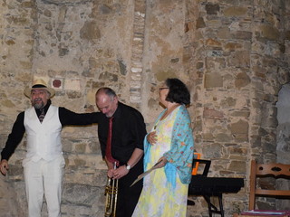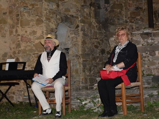Con l'occasione della presentazione del libro 'Vite di Farfa' della studiosa savonese Silvia Bottaro, Freddy Colt ha presentato uno spettacolo dedicato al poeta e pittore futurista che - notizia inedita - trascorse le ultime tre villeggiature della sua vita a Bajardo. L'attrice veronese Beatrice Zuin ha declamato versi di Farfa e cantato alcuni brani di Barzizza, il trombettista jazz milanese Giancarlo Mariani ha fatto ascoltare, insieme a Colt, alcuni pezzi di jazz anni Venti. Grande suggestione ha suscitato la visione di un rarissimo filmato di Farfa proiettato tra i ruderi della chiesa vecchia. Alcuni momenti della riuscitissima serata sono immortalati nelle immagini della gallery.