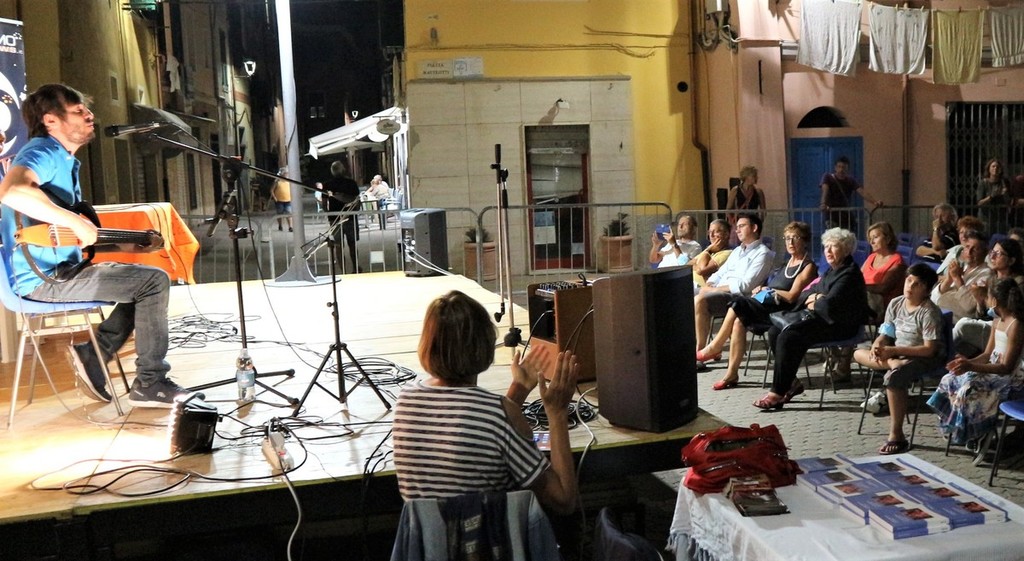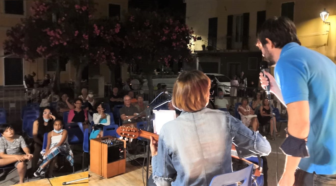 Con la conduzione del giornalista Claudio Porchia sul palco si sono esibiti l’attrice e scrittrice Giorgia Brusco e il cantante attore Eugenio Ripepi, che hanno presentato il libro “Il TeatroComico”. Attraverso piacevoli letture e apprezzati momenti di recitazione i due attori hanno coinvolto il pubblico numeroso che ha gremito tutti i posti disponibili della piazza. “Teatro Comico” è una raccolta di tre divertentissime opere dell’attrice: “Giù le mani dal malloppo!”; “Terremoto sui tacchi” e “Bebè per tre”. I frammenti delle opere presentati con grande professionalità e bravura hanno divertito il pubblico che ha lungamente applaudito.