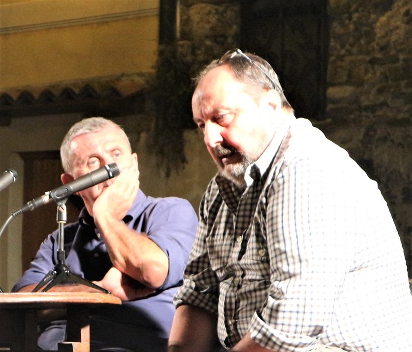 Affascinante il tema della serata: “storie e racconti di fagioli, pane nero e gran pistau”. Sul palco insieme all'attore comico Stefano Bicocchi in arte Vito anche il sindaco di Pigna Roberto Trutalli, esperto conoscitore della storia del paese ed i musicisti Gianni Martini e Mirko Rebaudo che con affascinanti melodie hanno accompagnato l’incontro spettacolo condotto dal giornalista Claudio Porchia.