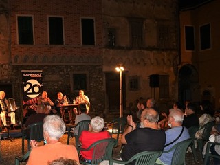 Affascinante il tema della serata: “storie e racconti di fagioli, pane nero e gran pistau”. Sul palco insieme all'attore comico Stefano Bicocchi in arte Vito anche il sindaco di Pigna Roberto Trutalli, esperto conoscitore della storia del paese ed i musicisti Gianni Martini e Mirko Rebaudo che con affascinanti melodie hanno accompagnato l’incontro spettacolo condotto dal giornalista Claudio Porchia.