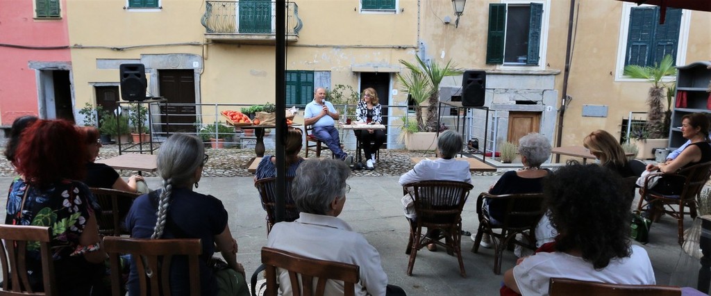 Al termine dell’incontro è seguita una degustazione di una preparazione tipica del Ponente ligure: “Pan e pumata”, che è anche il titolo del primo libro di Raffaella Fenoglio. Lo chef Federico Lanteri ha rivisitato il piatto utilizzando l’antico e fragrante Pane nero di Pigna, prodotto dal panificio Fratelli Lia di Camporosso e i pomodori e le verdure dell’orto di famiglia, il tutto abbinato con un ottimo Vermentino della cantina Grillo di Isolabona.