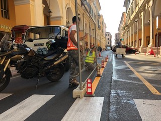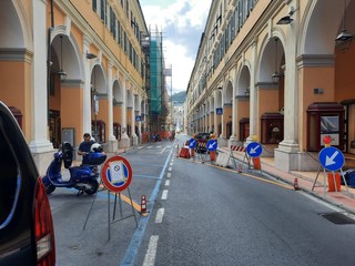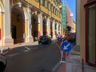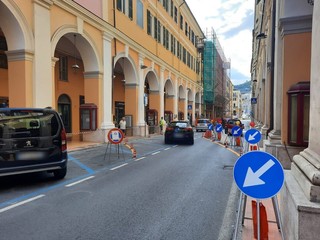 Disagi in via Bonfante, in pieno centro a Imperia, per la deviazione del traffico proveniente da Diano Marina all'incirca all'altezza di metà dei portici a causa dei ponteggi montati per alcune riparazioni in corso alla facciata di un palazzo. I commercianti e i residenti della zona denunciano che la strettoia che si è venuta a creare produce un intasamento continuo soprattutto nelle ore di punta.