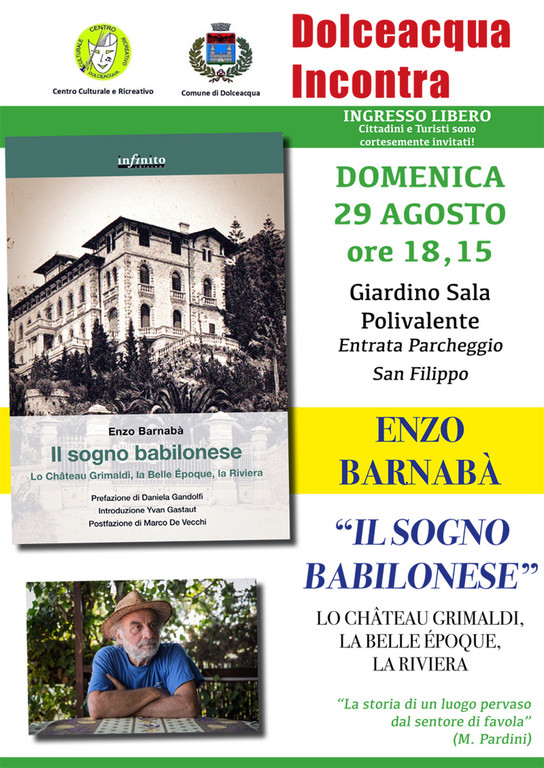 Oggi alle 18.15, presso il giardino della sala polivalente di Dolceacqua (entrata parcheggio San Filippo), Enzo Barnabà presenta il suo nuovo libro ‘Il sogno Babilonese’.