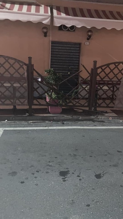 Notte di follia a Ventimiglia, uomo armato di bastone distrugge il dehor di un bar e alcuni scooter (foto e video)