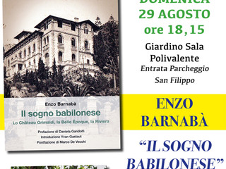 Oggi alle 18.15, presso il giardino della sala polivalente di Dolceacqua (entrata parcheggio San Filippo), Enzo Barnabà presenta il suo nuovo libro ‘Il sogno Babilonese’.