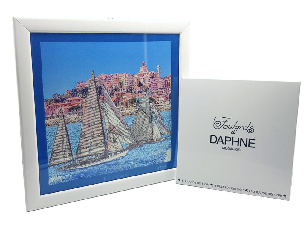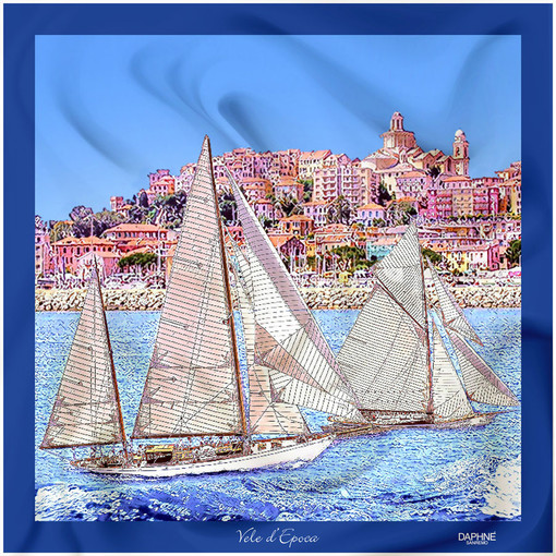 Daphné Sanremo dedica alla manifestazione Vele d’Epoca di Imperia un foulard che immortala su seta le Signore del mare mentre navigano di fronte alla bellissima Città di Imperia.