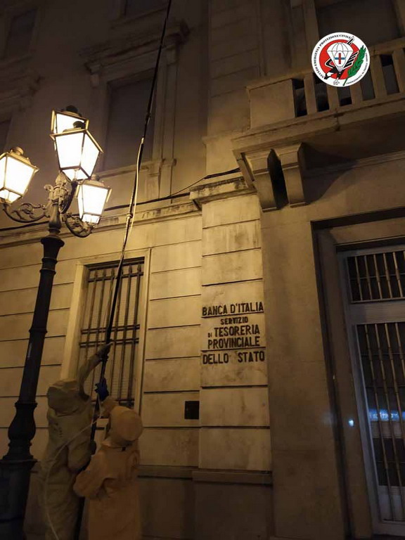 Una squadra di supporto ha provveduto a mettere in sicurezza la strada e le abitazioni circostanti, al fine di evitare che nel corso dell'intervento alcuni imenotteri, attirati dalle luci, potessero sfuggire e pungere delle persone.