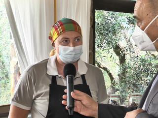 La titolare Sabrina ci accompagna nella visita e ci svela i segreti di alcune ricette di grande successo: i Tagliolini al Rossese e il Coniglio alla ligure aromatizzato alla Lavanda.