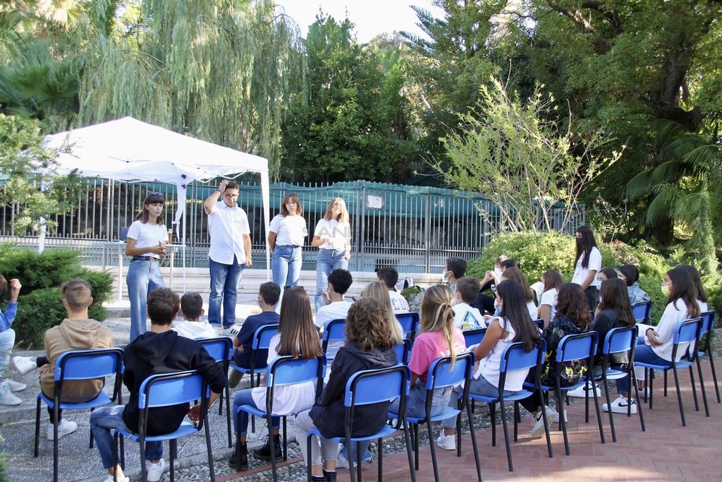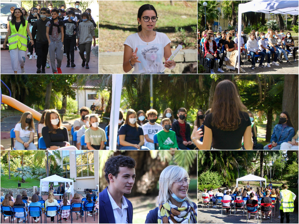 Intervento del sindaco Alberto Biancheri, degli assessori Costanza Pireri e Silvana Ormea, del dirigente scolastico, Claudio Valleggi, e dei rappresentanti d'istituto.