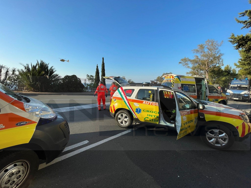 Ventimiglia: incidente sull'Aurelia all'incrocio con viale Toscanini, madre e figlio feriti e trasportati in elicottero (Foto e Video)