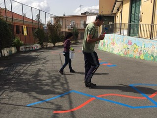 Una serie di giochi didattici, logici, matematici, di orientamento ed equilibrio ha preso vita su tutta l’area: i giochi sono stati disegnati a terra, senza creare ingombro, e saranno fruibili dai bambini nell’intervallo scolastico e non solo, da soli o in gruppo.