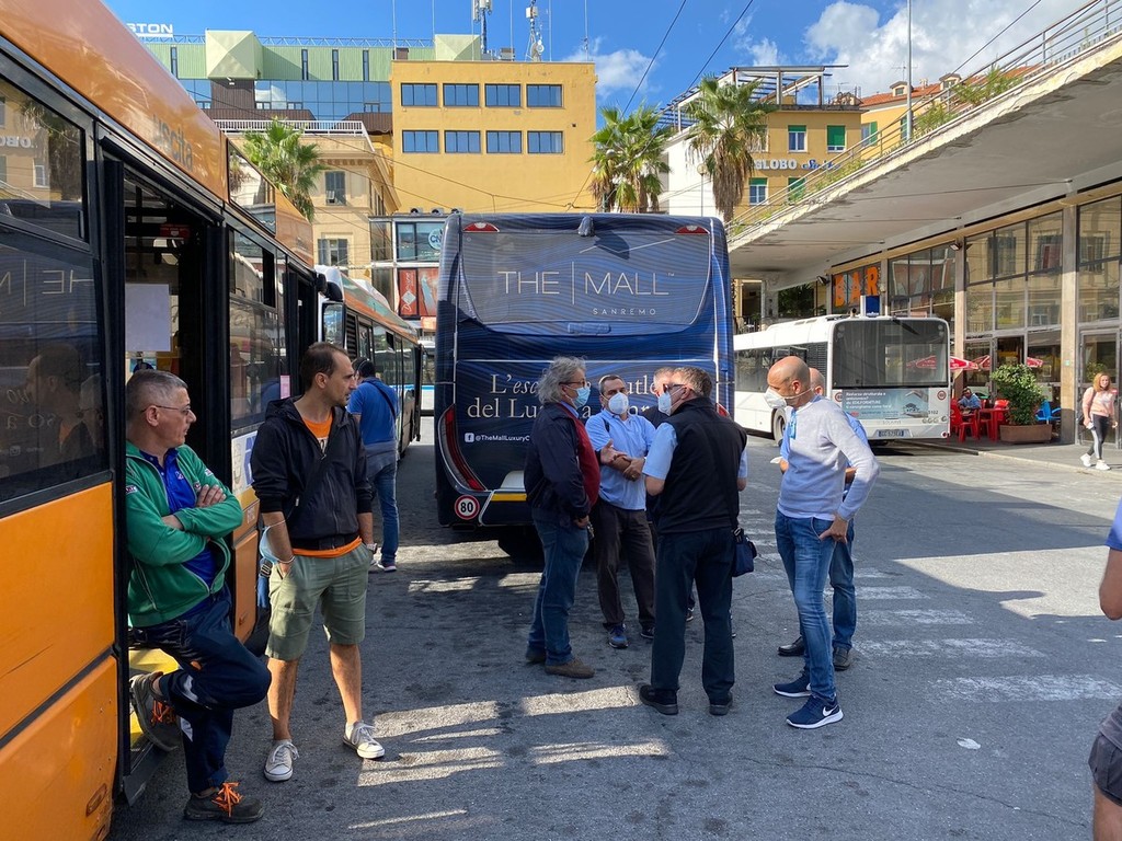 Stipendi in ritardo, scatta la protesta degli autisti RT: corriere ferme a Sanremo e Imperia (foto e video)