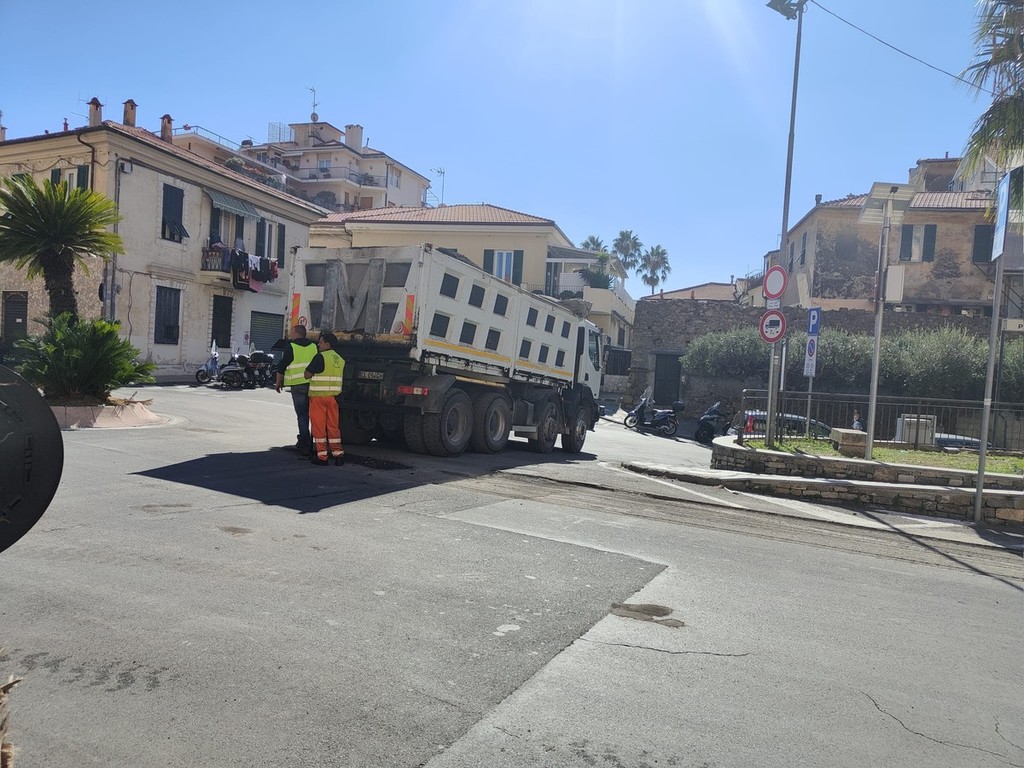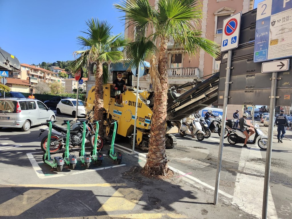 Imperia, lavori in corso per gli asfalti mandano in tilt il traffico sul Berta (foto)