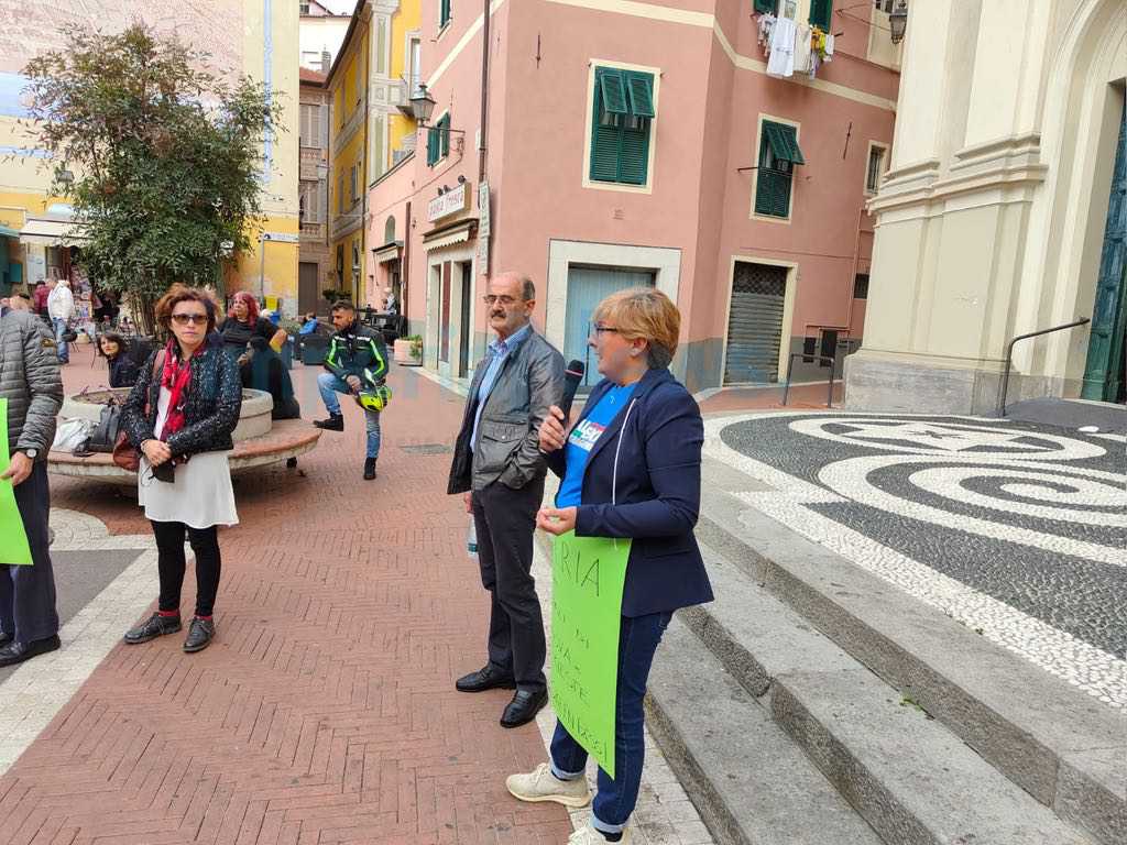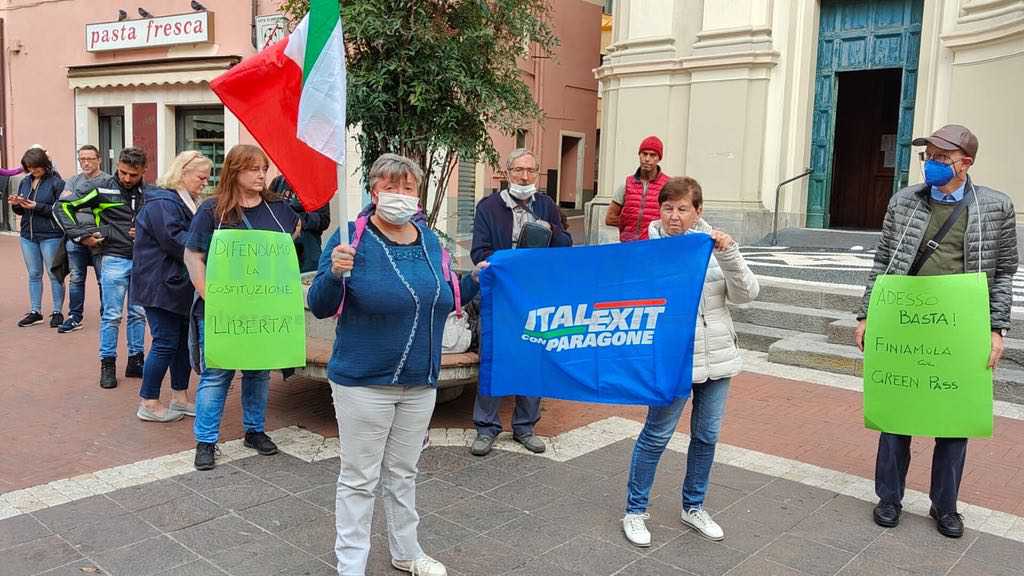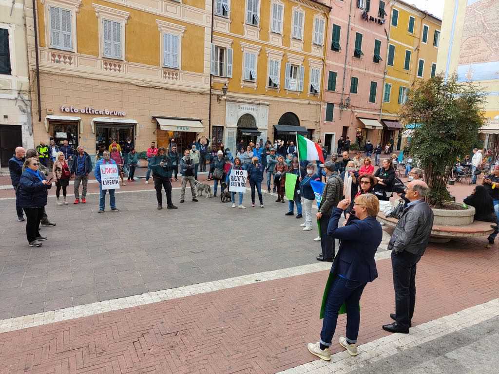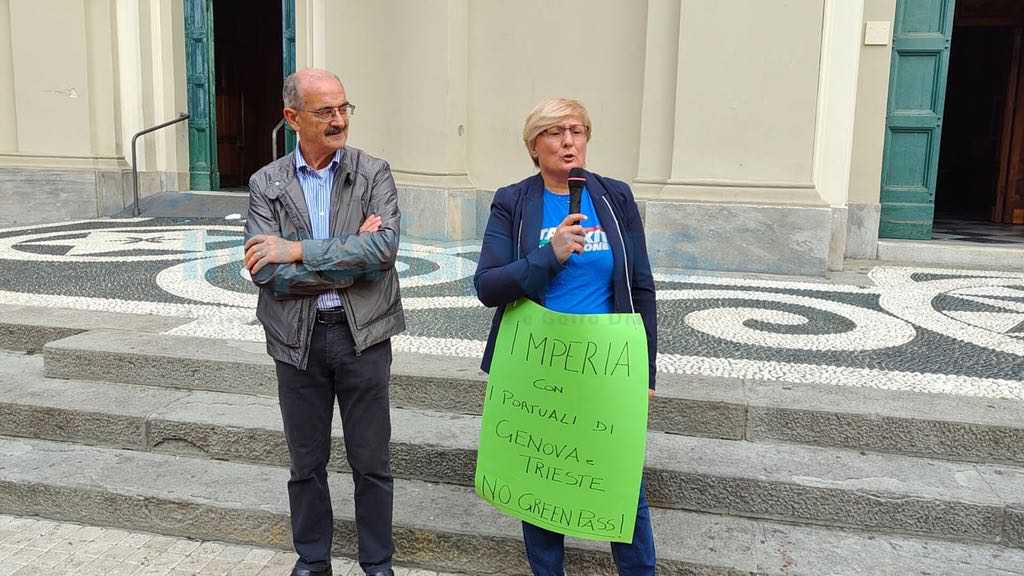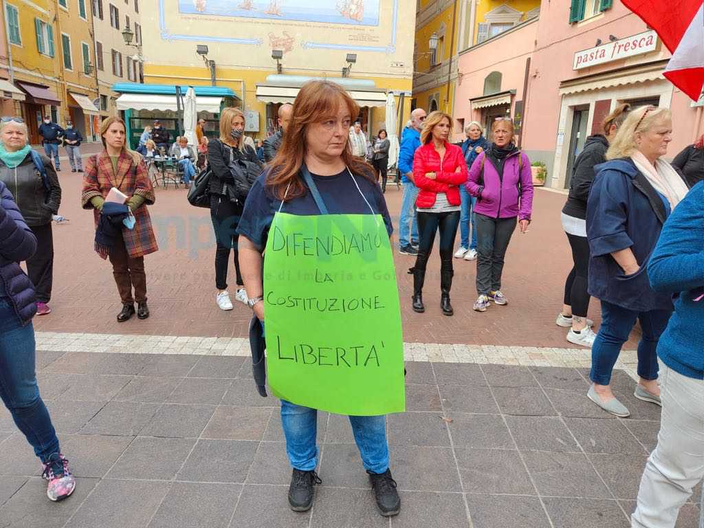 Imperia, la dipendente di Asl 1 Simona Marazzi (Italexit con Paragone) guida la protesta ‘no green pass: “Ci sentiamo violentati” (foto e video)