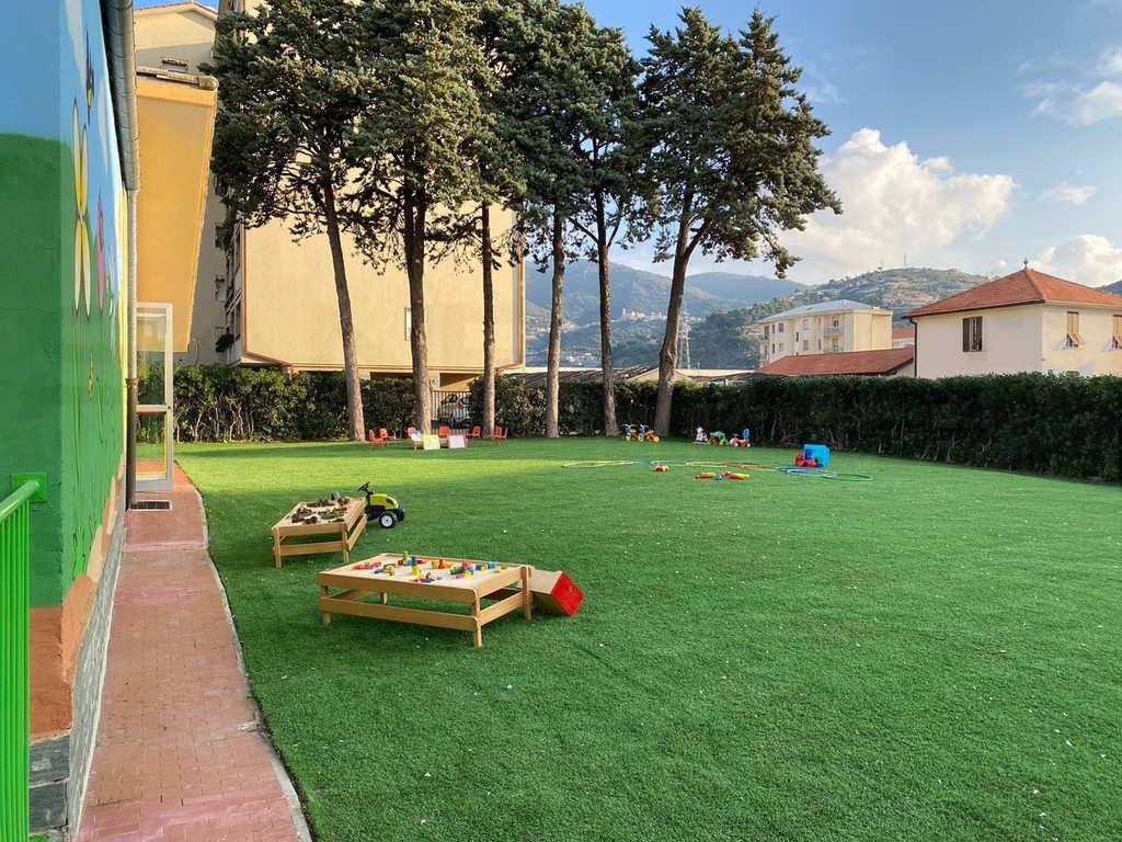 La prima cosa che salta subito all'occhio è il 'Murales' variopinto a tema natura realizzato da Maurizio ed Elisabetta. Il nuovo asilo girotondo è stato completamente valorizzato nel giro di poche settimane anche grazie a un sapiente riutilizzo di alcuni vecchi lettini rimasti all'interno della struttura diventati oggi banchi per laboratori da usare in giardino. Il nuovo nido offrirà molte attività originali, basate sul concetto del riuso e del riciclo, la conoscenza della natura che ci circonda e molto altro. Una ricca offerta in termini di qualità che si andrà a integrare con tanti ambienti rinnovati per tutte le tradizionali attività di apprendimento e sviluppo.