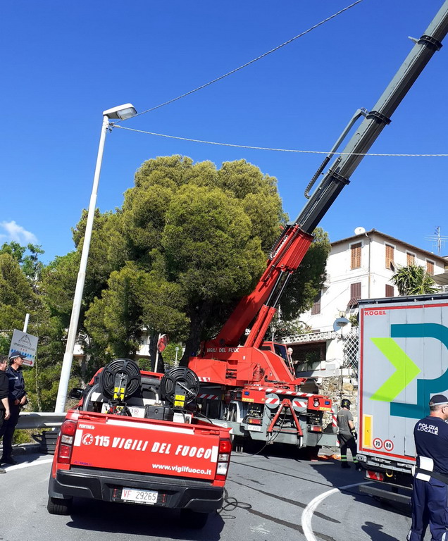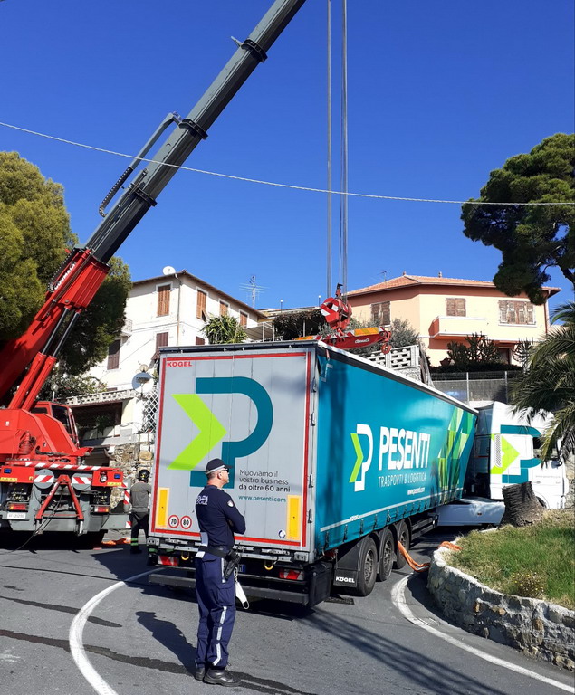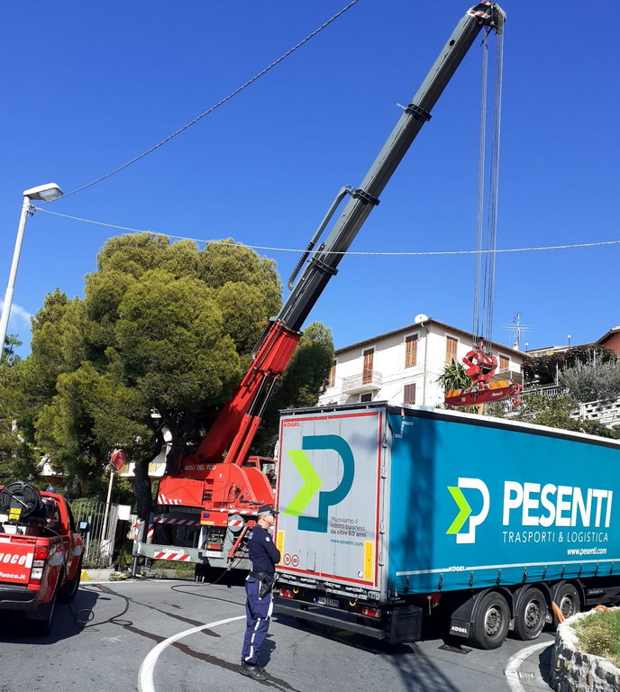 Un altro messo pesante bloccato tra le curve di via Val D’Olivi a Sanremo, la strada che unisce l’Aurelia in corso Mazzini con la frazione di Poggio.