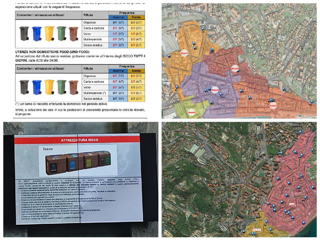 Saranno installate delle 'batterie' di contenitori elettronici e automatizzati per le varie frazione della differenziata, che si apriranno con tessera magnetica solo nei giorni e negli orari esplicitamente previsti per il conferimento. Il posizionamento dei nuovi punti di raccolta della spazzatura è stato studiato affinché nessuna utenza sia più distante di 200 metri, così da agevolare le persone più anziane e quelle con limitata mobilità.