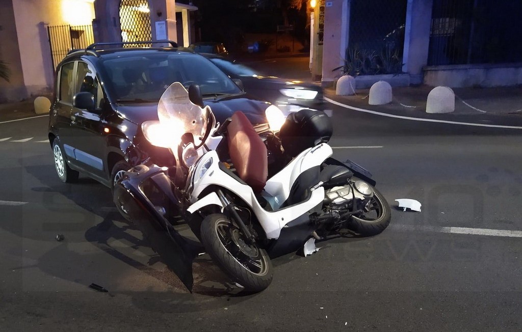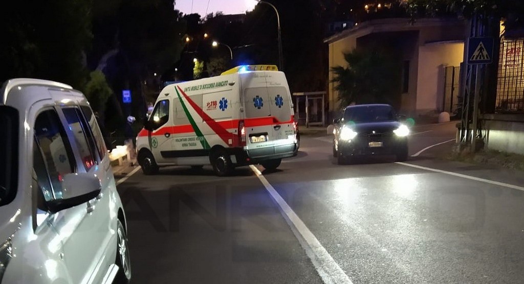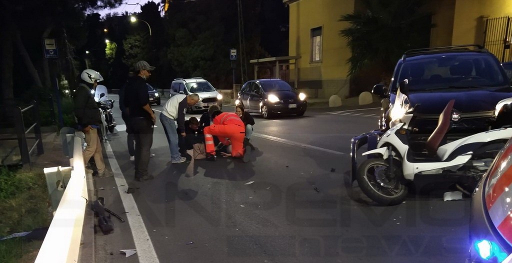 Scontro auto-scooter, questa sera poco dopo le 19 sulla statale Aurelia, all’altezza di Villa Spinola a Bussana.