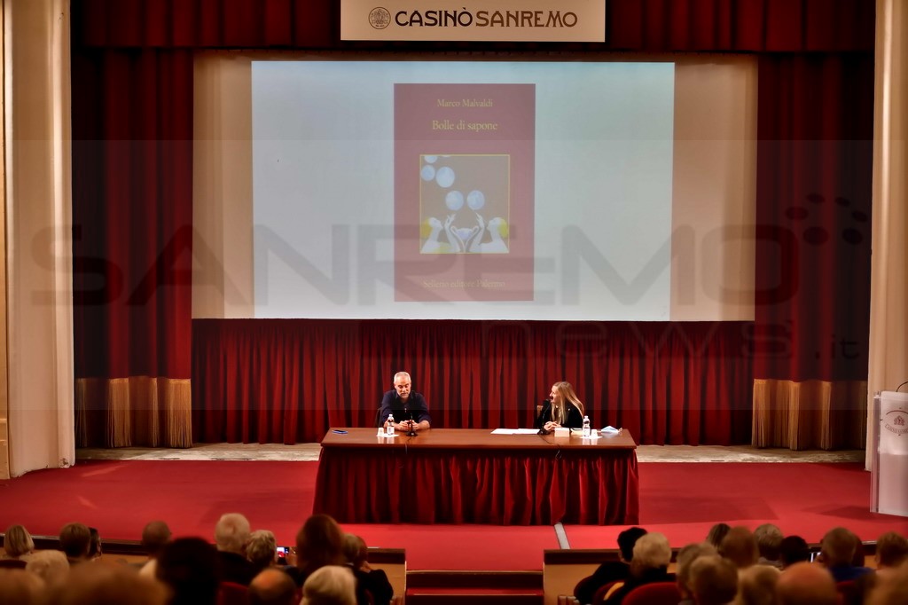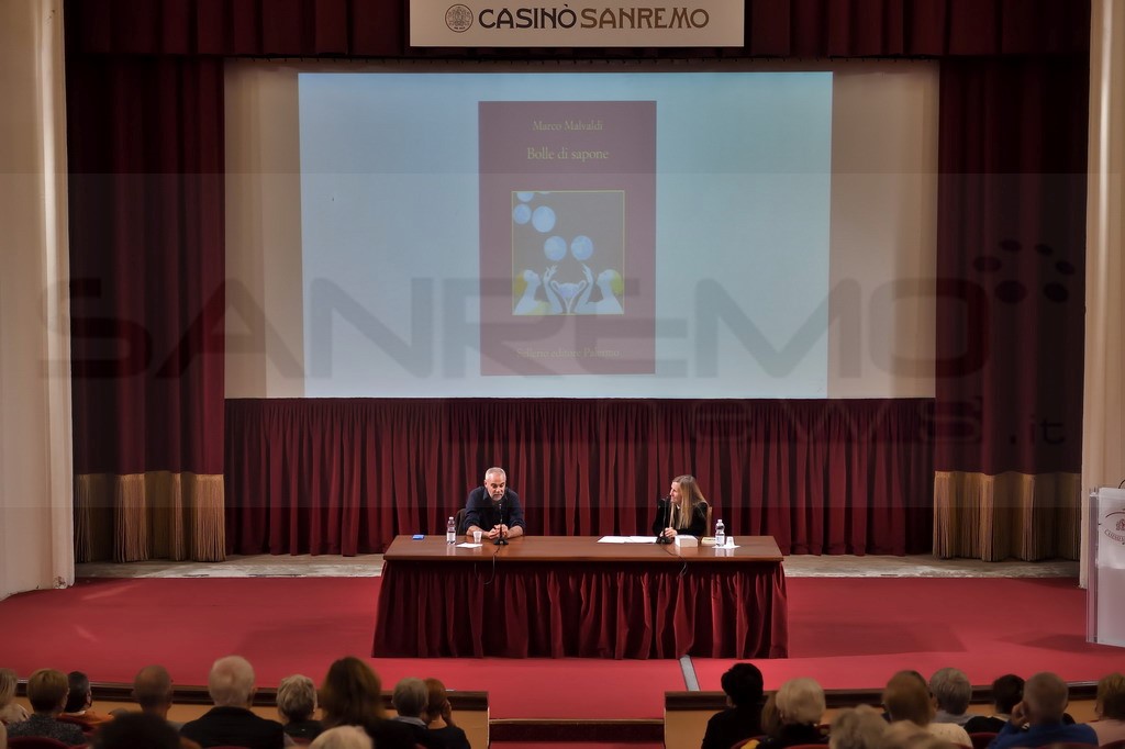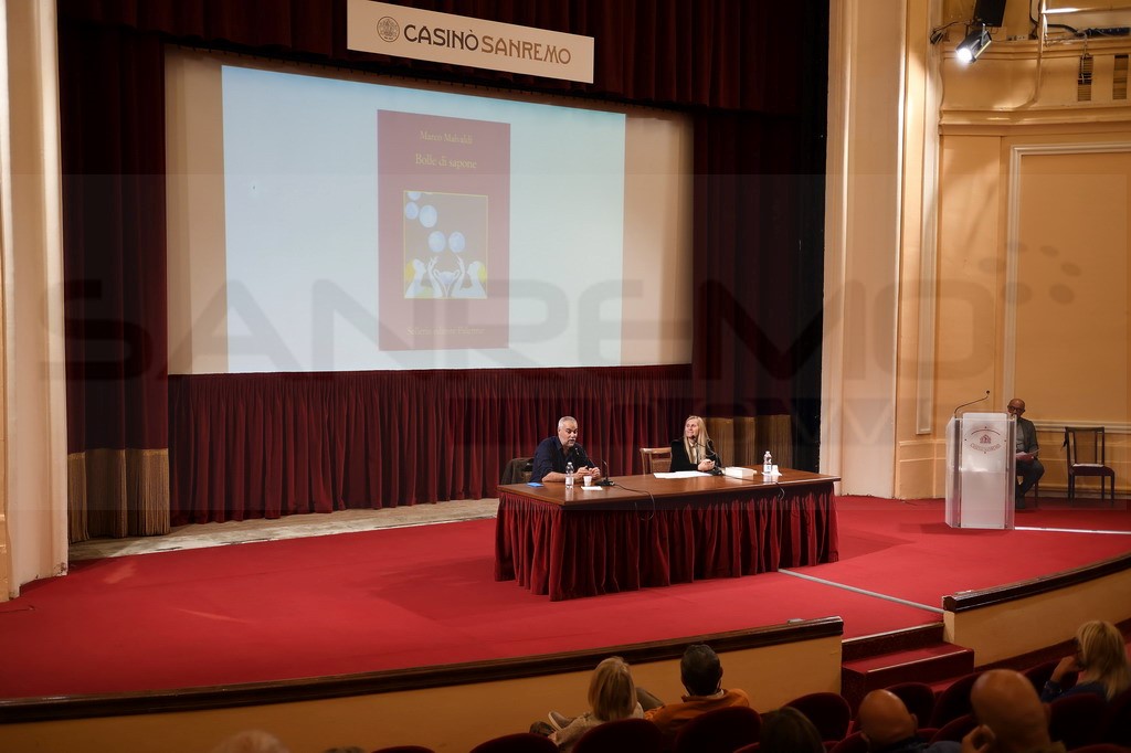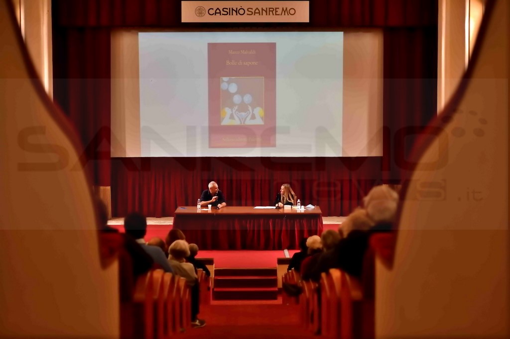 Nuovo appuntamento, oggi pomeriggio al teatro dell’Opera del Casinò di Sanremo, con Marco Malvaldi che ha presentato il suo recentissimo 'Bolle di Sapone' (Sellerio), nuovo successo editoriale, con letture scelte da Loredana De Flaviis e Franco La Sacra, della compagnia Il Teatro dell’Albero.