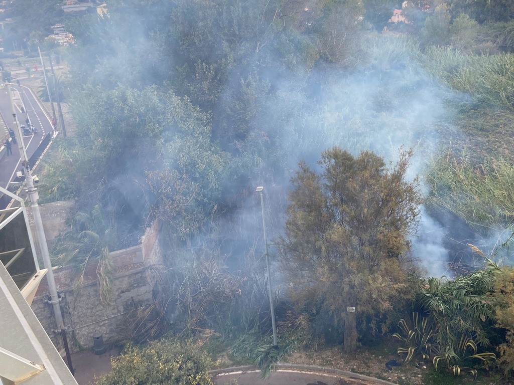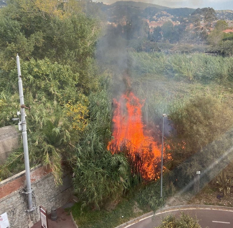Ventimiglia: incendio nel primo pomeriggio alla vegetazione nell'oasi del Nervia, intervento dei VVF (Foto)